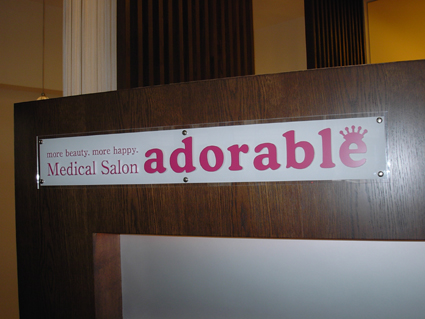入口パーテーションと受付カウンターに設置したプレートサインです
